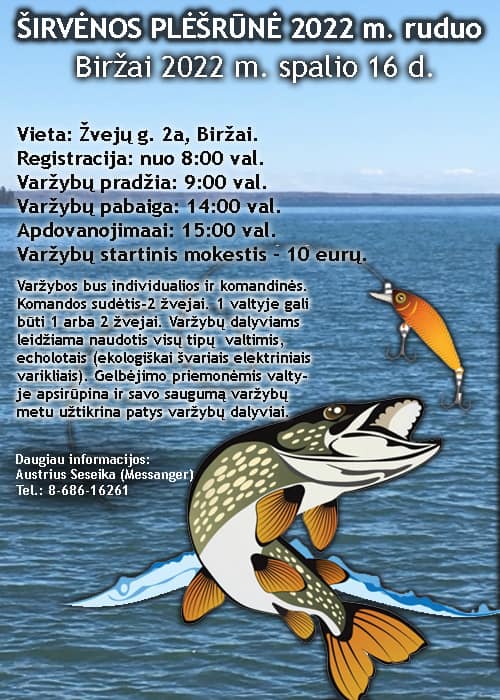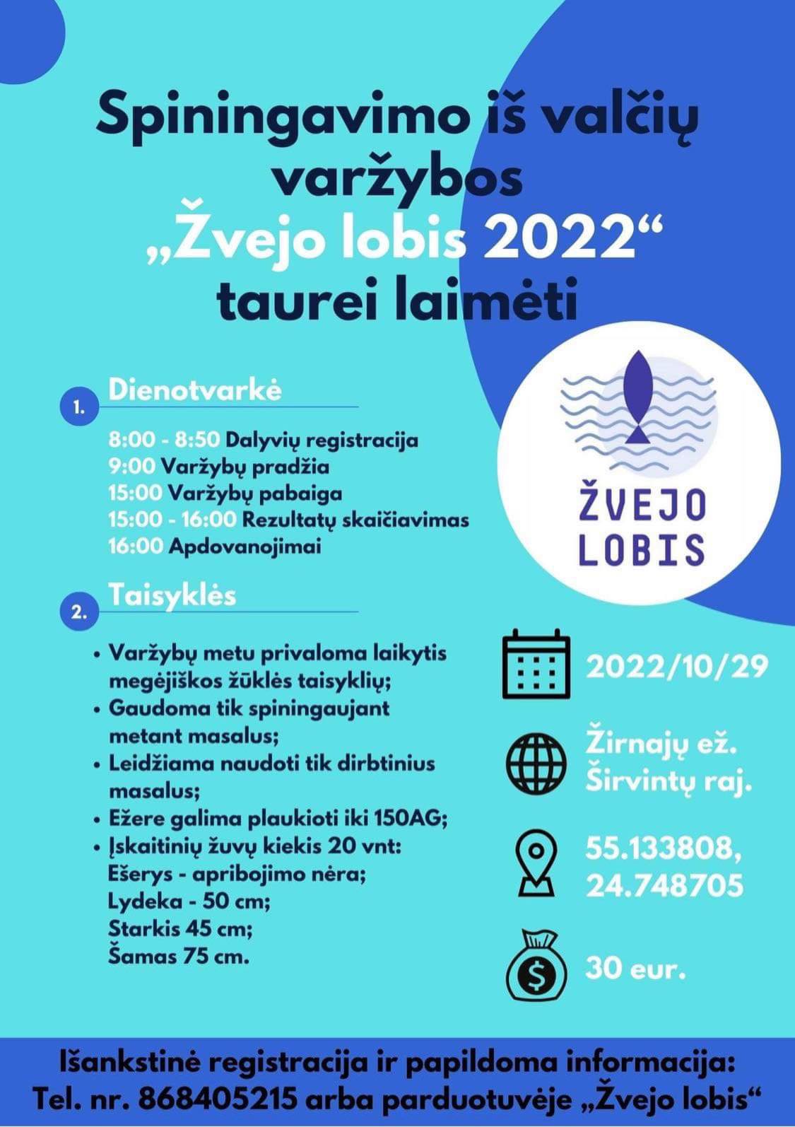Kviečiame spalio 29 d. į spiningavimo varžybas "Žvejo lobis 2022" taurei laimėti" 🎣🥇🏆