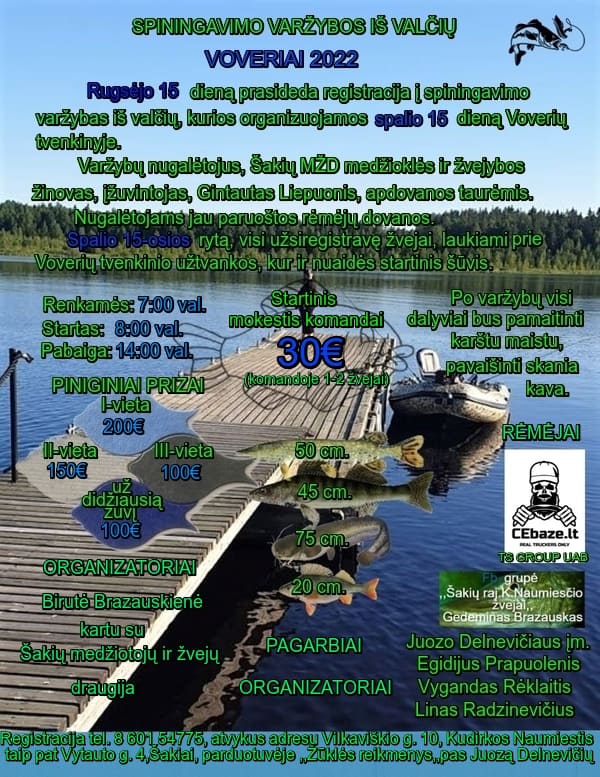 Rugsėjo 15 dieną prasideda registracija į spiningavimo varžybas iš valčių, kurios organizuojamos spalio 15 dieną Voverių tvenkinyje. Varžybų nugalėtojus, Šakių MŽD medžioklės ir žvejybos žinovas, įžuvintojas, Gintautas Liepuonis, apdovanos taurėmis.