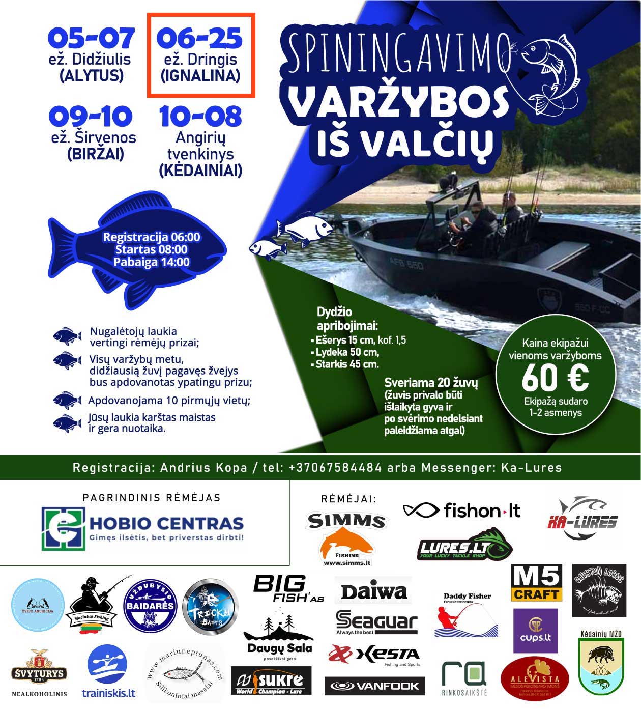 Spiningavimo varžybos gražiuose ir žuvinguose Lietuvos ežeruose ir tvenkiniuose.