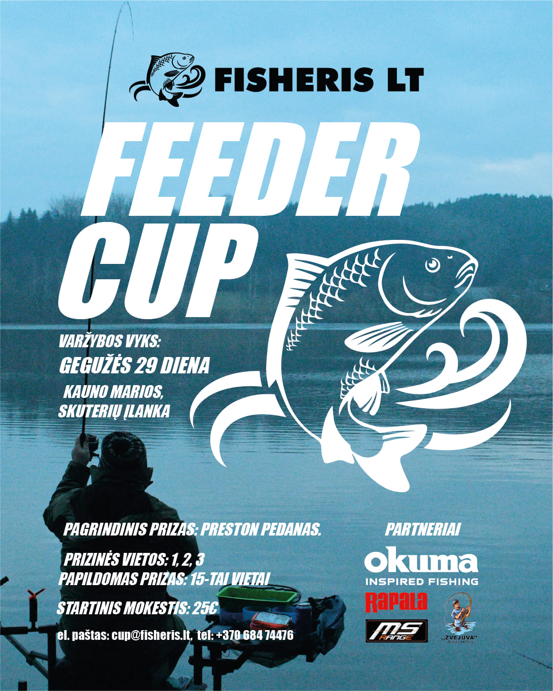 Fisheris LT Feeder Cup - Pagrindinis prizas: Preston pedanas. Prizinės vietos: 1, 2, 3. Papildomas prizas 15-tai vietai.
