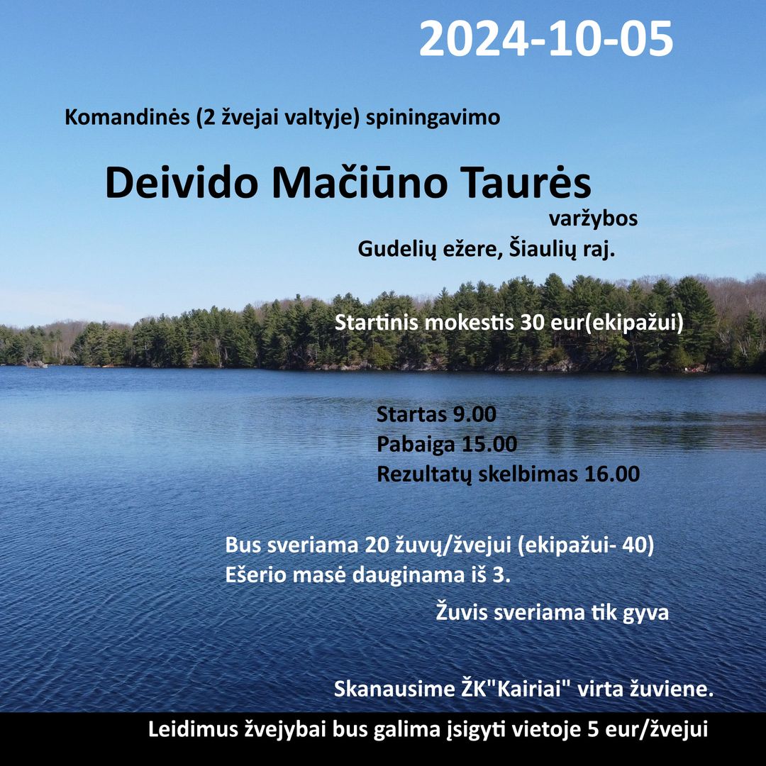 Kviečiame dalyvauti D. Mačiūno, buvusio Žemaitijos sportinės žūklės lygos prezidento, Taurės varžybose, kurios vyks 2024-10-05, Gudelių ežere.