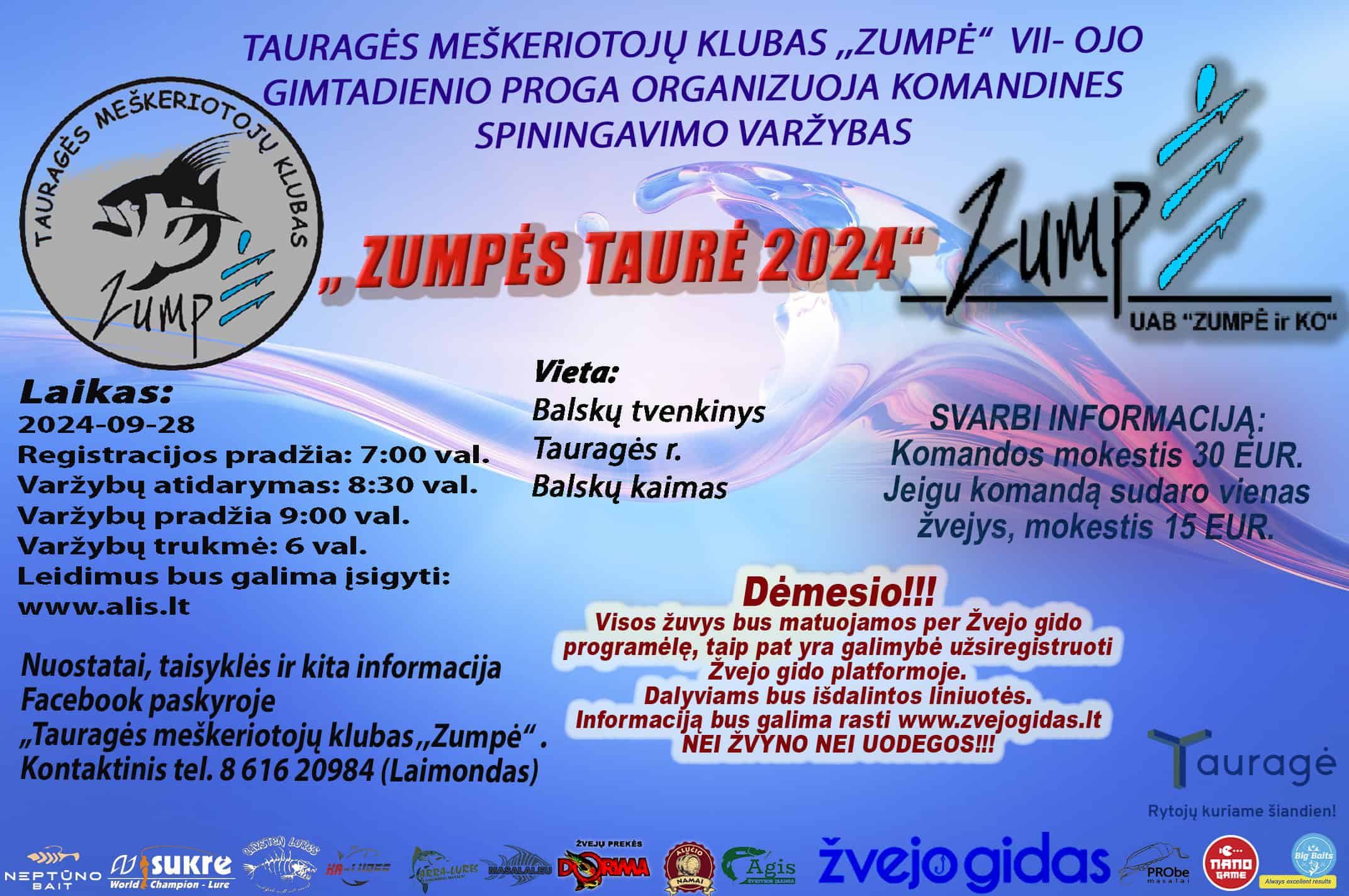 Tauragės meškeriotojų klubas "Zumpė" VII - ojo gimtadienio proga organizuoja komandines spiningavimo varžybas!