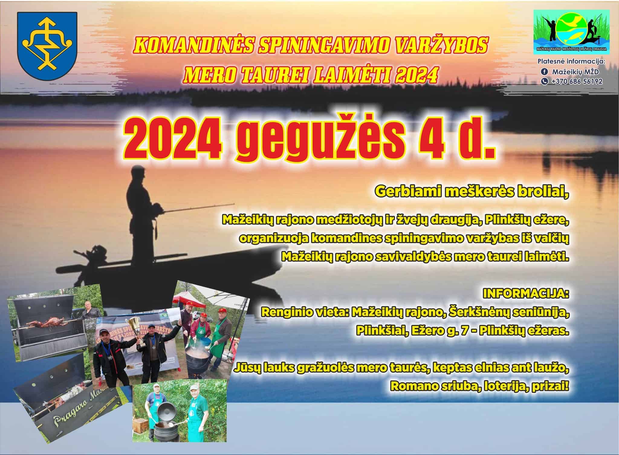 Gegužės 4d. kviečiame visus prie Plinkšių ežero į tradicines Mažeikių MŽD organizuojamas Komandinio spiningavimo varžybas MAŽEIKIŲ RAJONO SAVIVALDYBĖS MERO TAUREI LAIMĖTI.