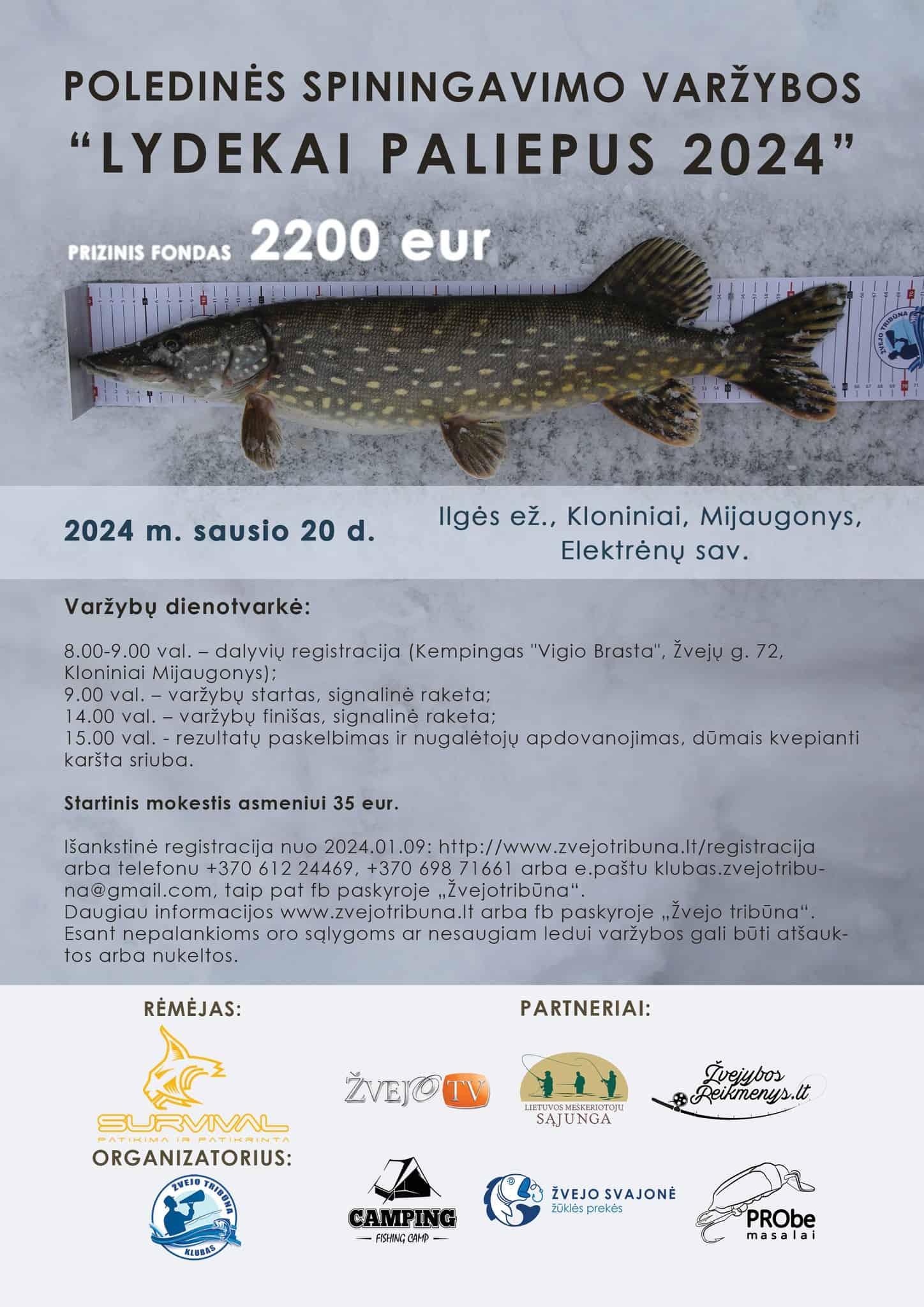 Šaltukas paspaudė ne juokais ir orų prognozės rodo, jog saugus ledas bus. Tad kviečiame į tradicines poledinio spiningavimo varžybas "Lydekai paliepus 2024" !!! Dalyvių sąrašas apačioje.