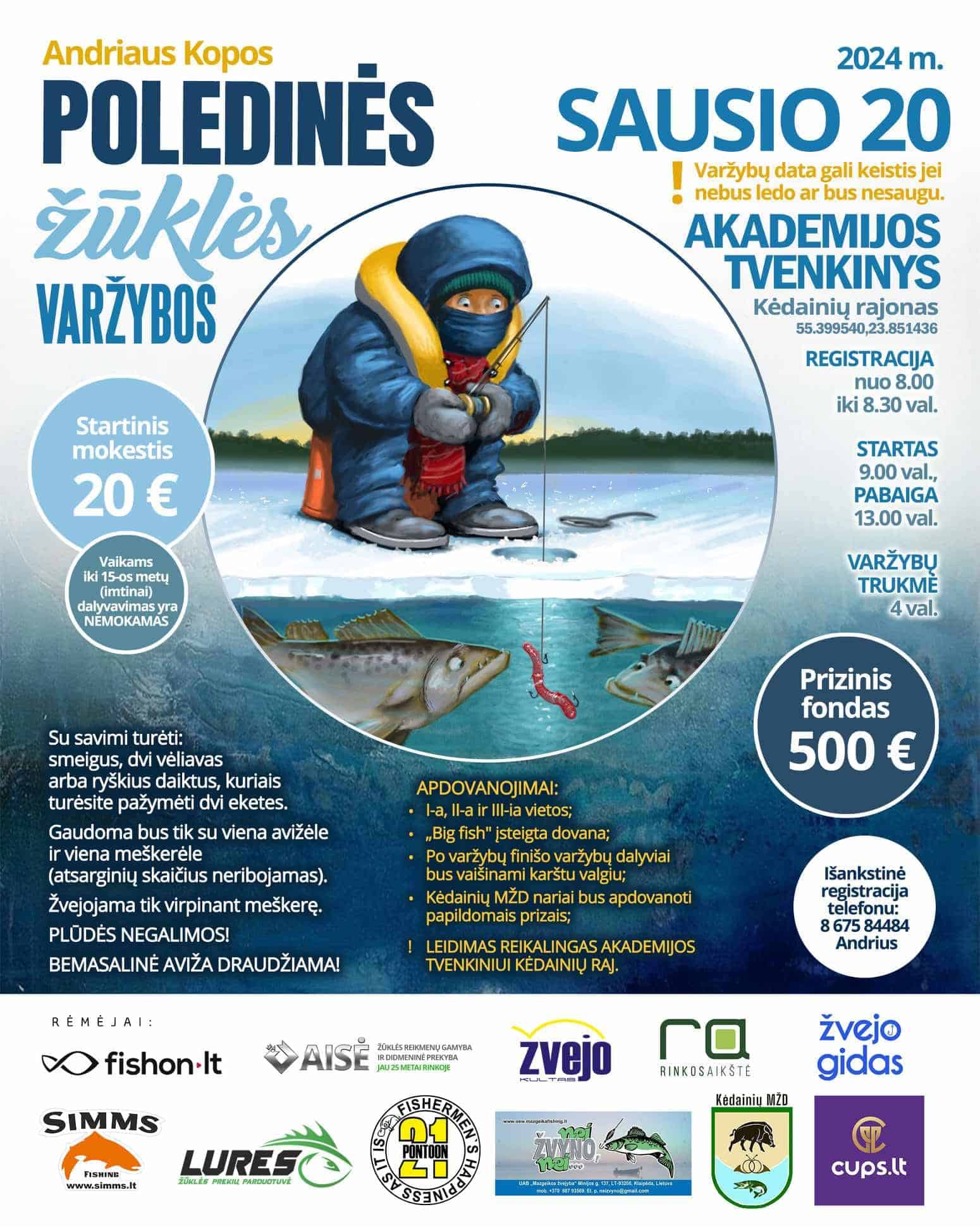 Kviečiame į poledinės žūklės varžybas Kėdainių rajone Akademijos tvenkinyje!