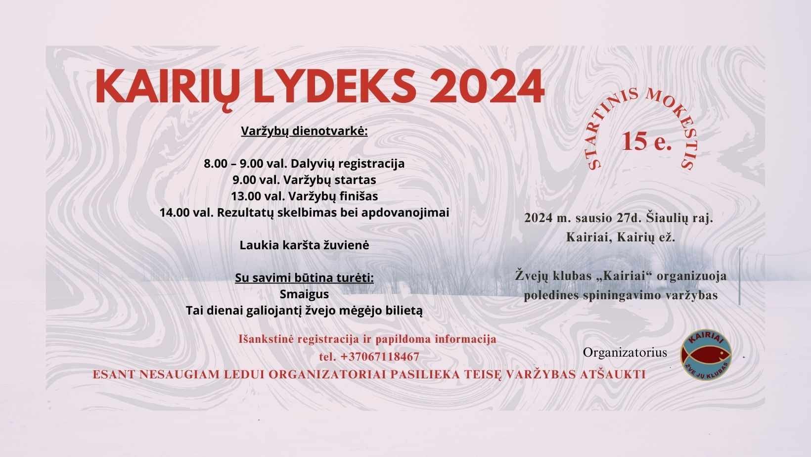Žvejų klubas „Kairiai" organizuoja poledinės spiningavimo varžybas.
