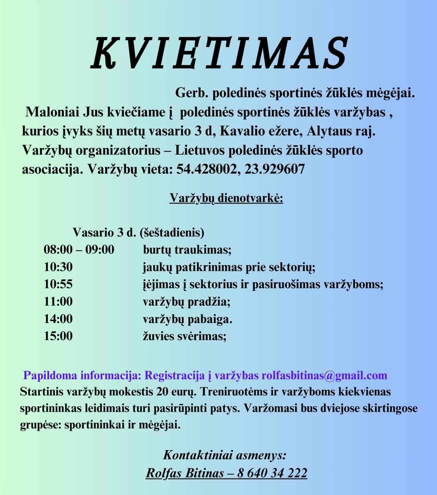 Kviečiame į poledinės žūklės varžybas Kavalio ežere, Alytaus raj.
